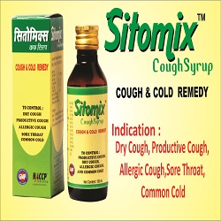 SITOMIX COUGH Syrup is a pure Ayurvedic Therapeutic medicine for Dry cough, Productive cough, Common cold And Sore Throat . It has found effective in upper respiratory tract infections. Sitomix is enriched with ADULSA, BAHEDA And KUMARI , its a safe herbal product manufactured with sugar base syrup. Not Recommended for Diabetic Patients.